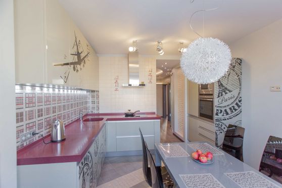 Бытовую технику лучше спрятать за фасадами встроенных шкафов. Благодаря этому приему кухонное помещение визуально будет выглядеть более просторным и свободным.