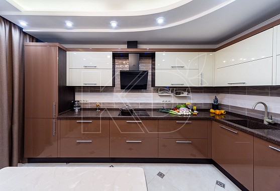 • Комфортностью. Рабочие поверхности в больших угловых кухнях размещаются с двух сторон, позволяя готовить всей семьей или небольшой компанией.