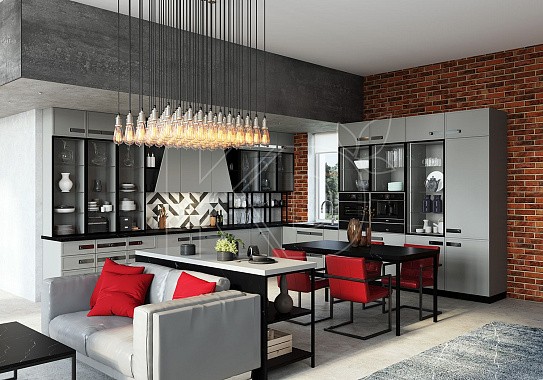 • Версии в стиле модерн выполняются в ярких сочных оттенках. Для них характерно использование минимального количества декора. При этом упор в таких гарнитурах делается на функциональность и удобство.