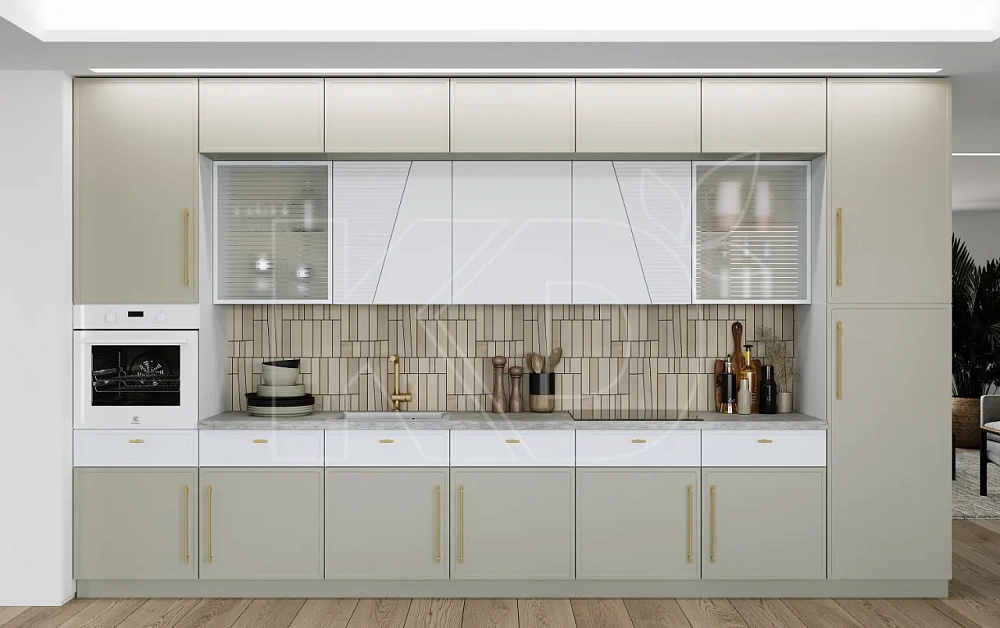 Функциональность и хранение. Гарнитур должен быть функциональным и иметь достаточно мест для хранения посуды, кухонных принадлежностей и продуктов. Различные шкафы, ящики, полки и выдвижные системы позволят с умом организовать пространство.