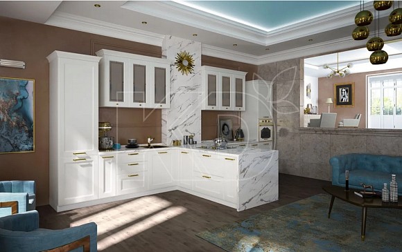 Белые классические кухни в ассортименте фабрики «Кухонный двор»