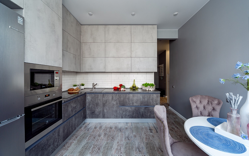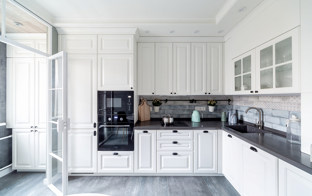 Столешница, заставленная разнообразной бытовой техникой, смотрится довольно неряшливо, особенно в небольших пространствах. Поэтому кухонная мебель со встроенной техникой выглядит гораздо привлекательнее. Спрятать за фасадами можно не только крупные предметы – вытяжку, духовой шкаф, посудомоечную машину, холодильник. Более мелкую технику, например, кофемашину, мультиварку и тостер тоже можно скрыть от глаз. Благодаря этому рабочая поверхность всегда будет выглядеть свободной и аккуратной.