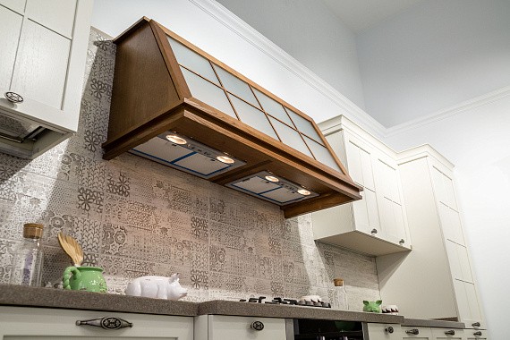 Что касается светильников, то здесь есть два пути. Можно купить две люстры для разных концов кухни или встроить трековое освещение, которое будет проходить по длине пространства. Но не стоит рассчитывать, что у вас получится осветить всё пространство одним источником света. В случае с вытянутой кухней это сделать нереально.