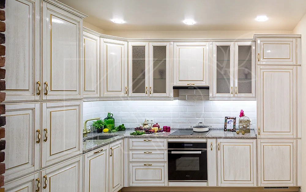 Красота дубовой фактуры полностью раскрывается в классическом стиле. Вся гамма природных коричневых оттенков передает строгость и роскошь классики. Планировка таких кухонь может быть прямой, угловой, параллельной или островной. Особенно эффектно классические модели смотрятся с гнутыми и радиусными фасадами. Подобные версии выглядят плавными и завершенными, добавляя в интерьер особый шик и элегантность.