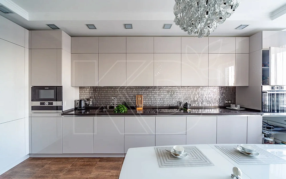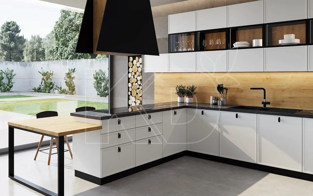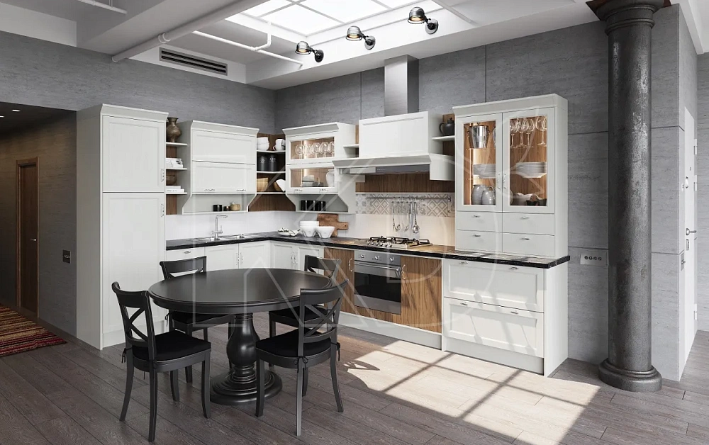 - Широкий ассортимент. Мебель для кухни такого цвета может иметь любую планировку.