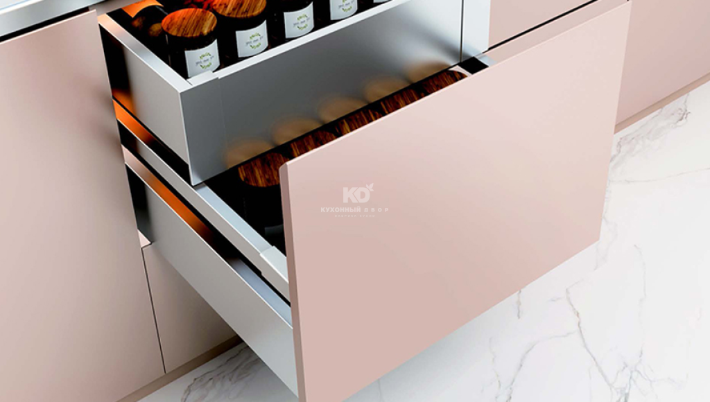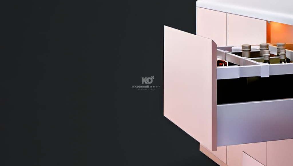 Ящики KD Pro Line — это эстетика и внимание к деталям нового уровня. Тонкие 13-миллиметровые стенки и варианты боковин со стеклом обеспечивают премиальный вид. Возможность интеграции LED-подсветки делает использование ещё визуально приятнее и комфортнее.