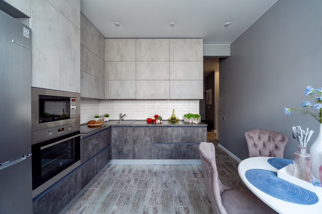 • Лаконичность: Чистые линии позволяют кухне гармонично вписаться как в лофт, так и в неоклассику.