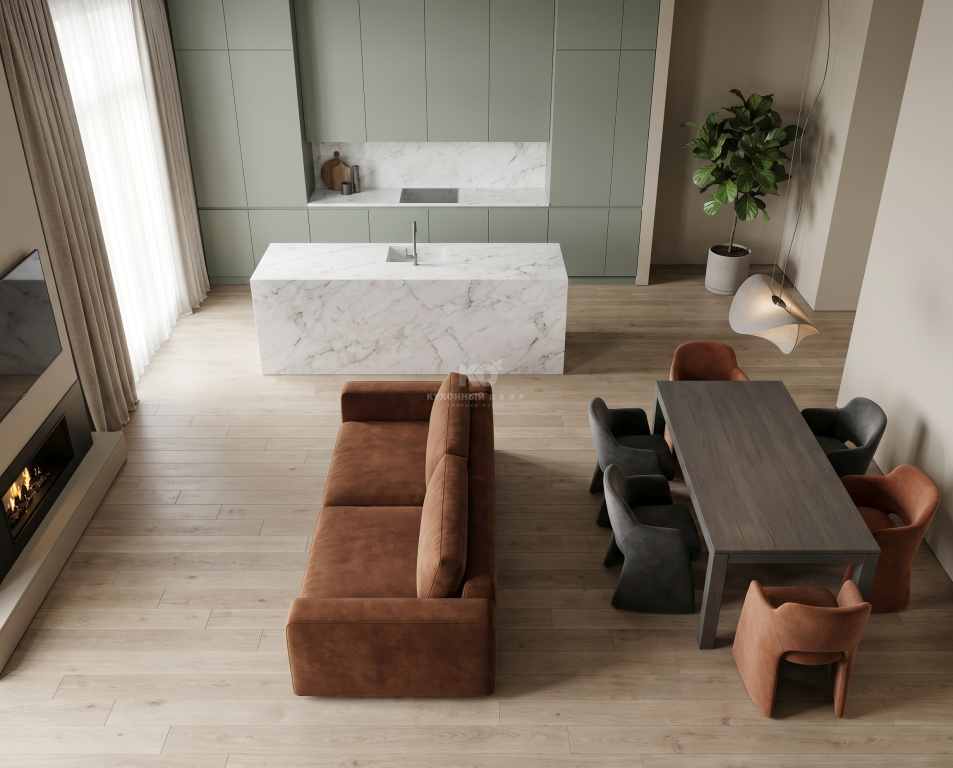Современная кухня-гостиная — это удобное и продуманное пространство, где готовят, отдыхают и проводят время с близкими. Здесь всё под рукой: функциональная кухня, комфортная гостиная, уютная мебель и понятная планировка, которая делает жизнь проще и приятнее каждый день.