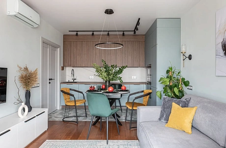 - Комната становится визуально просторнее. Даже небольшие квартиры кажутся больше и воздушнее, когда кухня и гостиная объединены.