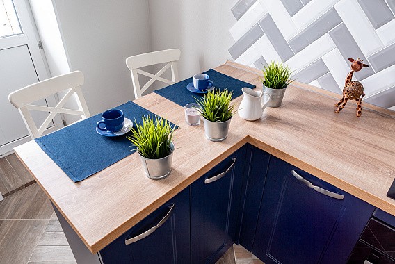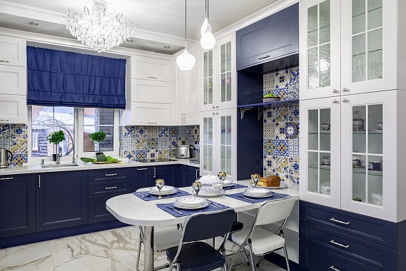 Отдельно стоит отметить то, что всем желающим сбросить вес диетологи рекомендуют активно включать синий в кухонное пространство. Считается, что этот цвет снижает аппетит, обеспечивает более быстрое чувство насыщения и удовлетворенности от еды.