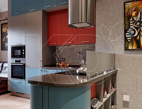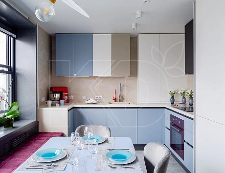 Заказать двухцветный гарнитур вы можете в фирменном салоне бренда «Кухонный Двор». Смотреть каталог