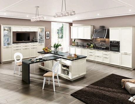 Гарнитур из шпона дуба выглядит элегантно и изысканно. Этот материал представлен в широкой цветовой палитре – от молочного до черного – поэтому создать с ним желаемый дизайн интерьера будет достаточно просто.