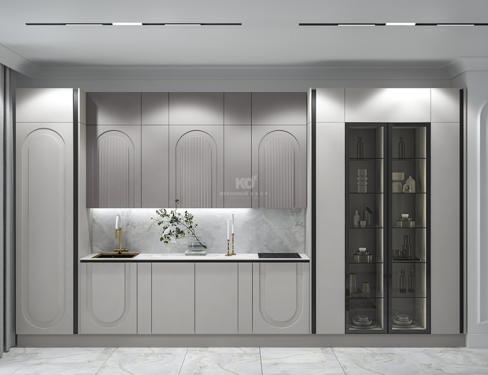 Арочная фрезеровка фасадов — не просто декор, а стилистический код, в котором зашифрованы вечная красота и гармония. Изгибы создают рельеф, в котором играет свет, а тени оживляют поверхность, превращая кухню в часть живого пространства.
