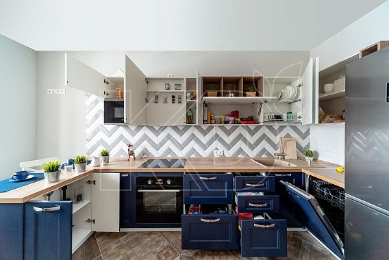 Синяя кухня в интерьере