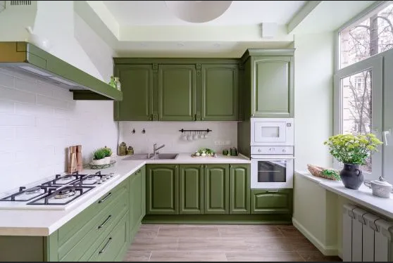 Особенности угловых кухонь зеленых оттенков