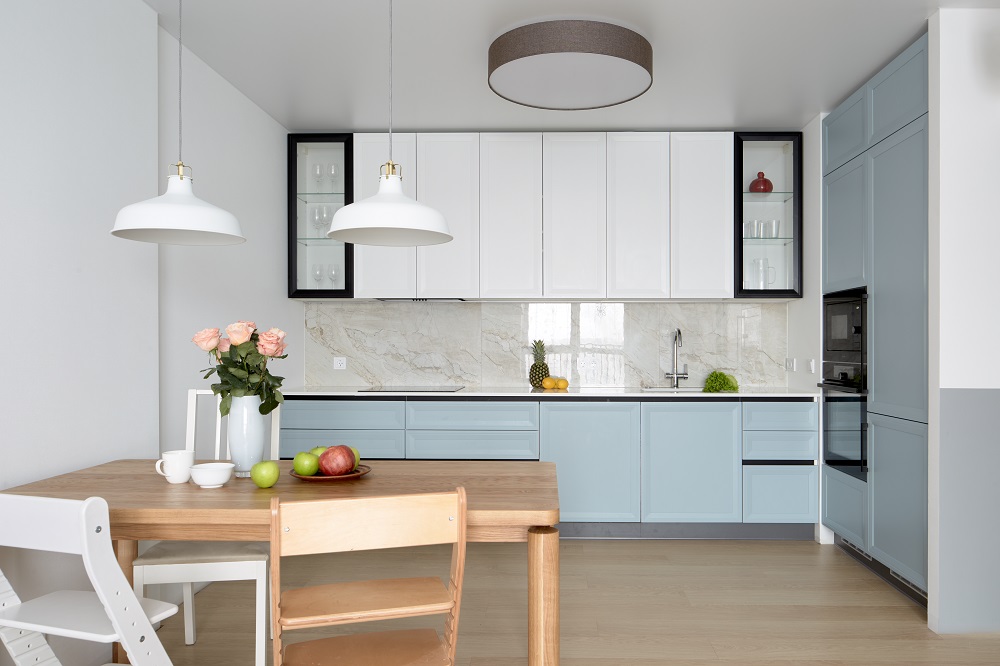 Воздушно-небесная кухня с чёрными акцентами