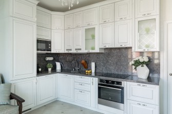 Фасады таких кухонь покрывают матовой и ультраглянцевой эмалью белого, черного, бежевого, сиреневого и прочих оттенков. Благодаря особой текстуре подобной мебели легко придать искусственно состаренный вид, украсив ее золотой или серебристой патиной. Еще одно достоинство кухонь из дубового массива – ее полная экологичность. Такая мебель не содержит токсичных компонентов и не вызывает аллергии, полностью безопасна для здоровья всех членов семьи.