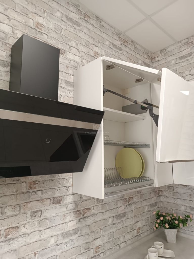 Длина по стене c варочной панелью 2450 мм., длина по стене с мойкой 1050 мм., высота кухни 2370 мм.