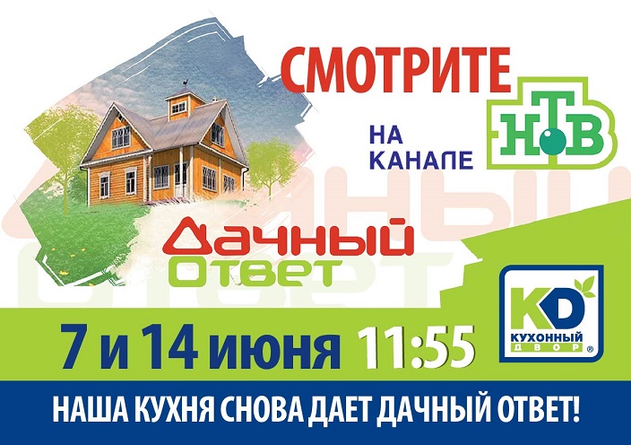 В это воскресенье, 7 июня в 11:55 на канале НТВ покажут особенный выпуск телепроекта «Дачный Ответ»! Вы увидите преображение шикарного дома, гостями которого становились известные пианисты, дирижеры и режиссёры театра. И «Кухонный Двор» примет в этом преображении самое активное участие!